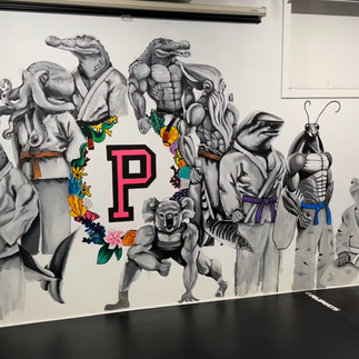 Back at the gym, we celebrated the completion of our incredible grappling mural, which now graces the wall with vibrant energy. This project was the brainchild of Coach Paul and was brought to life by the talented hands of Coach Jessie and Kaitlyn. The mural not only adds artistic flair to our space but also symbolizes the spirit and dedication of our grappling community.